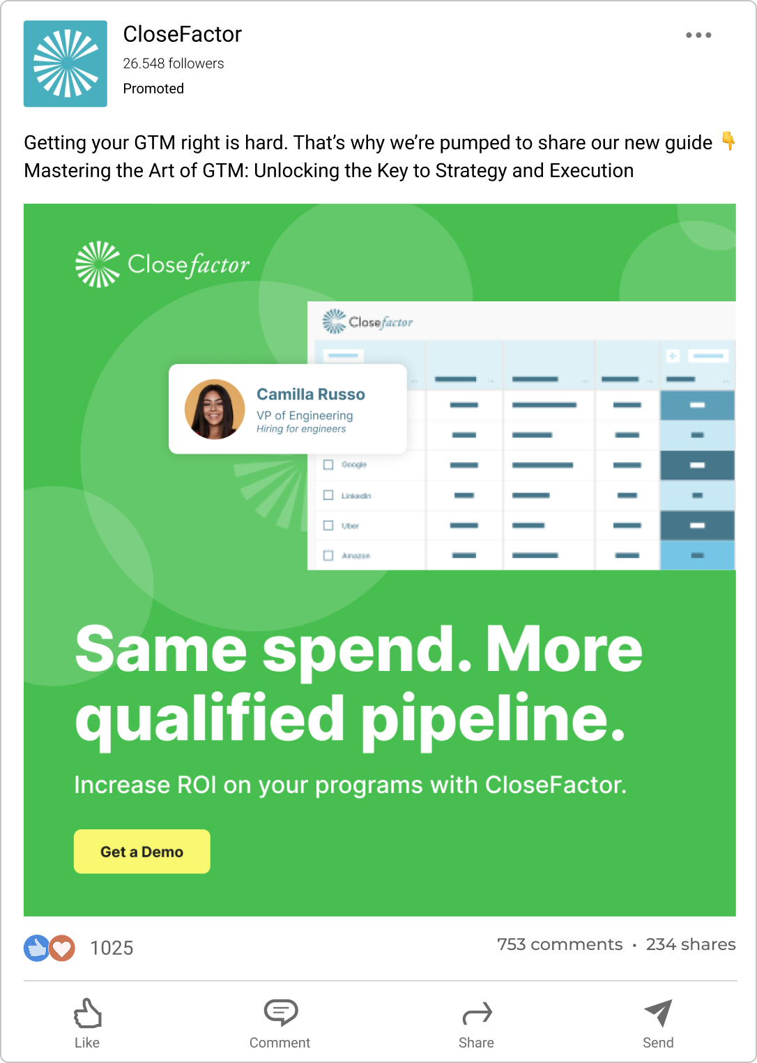 CloseFactor, a sales GTM software solution, is a current client that wanted to refresh and evolve their brand to be cheerful, approachable, and bold. They wanted their customers and prospects to visit their website and feel that at every touchpoint, their brand and product is reliable, simple, and unique. This refresh included an expanded color palette, an adapted circle motif, updated lively photography, and an introduction of rounded elements. I've created a GTM guide, paid ad campaigns, social carousels, style guides, and more.