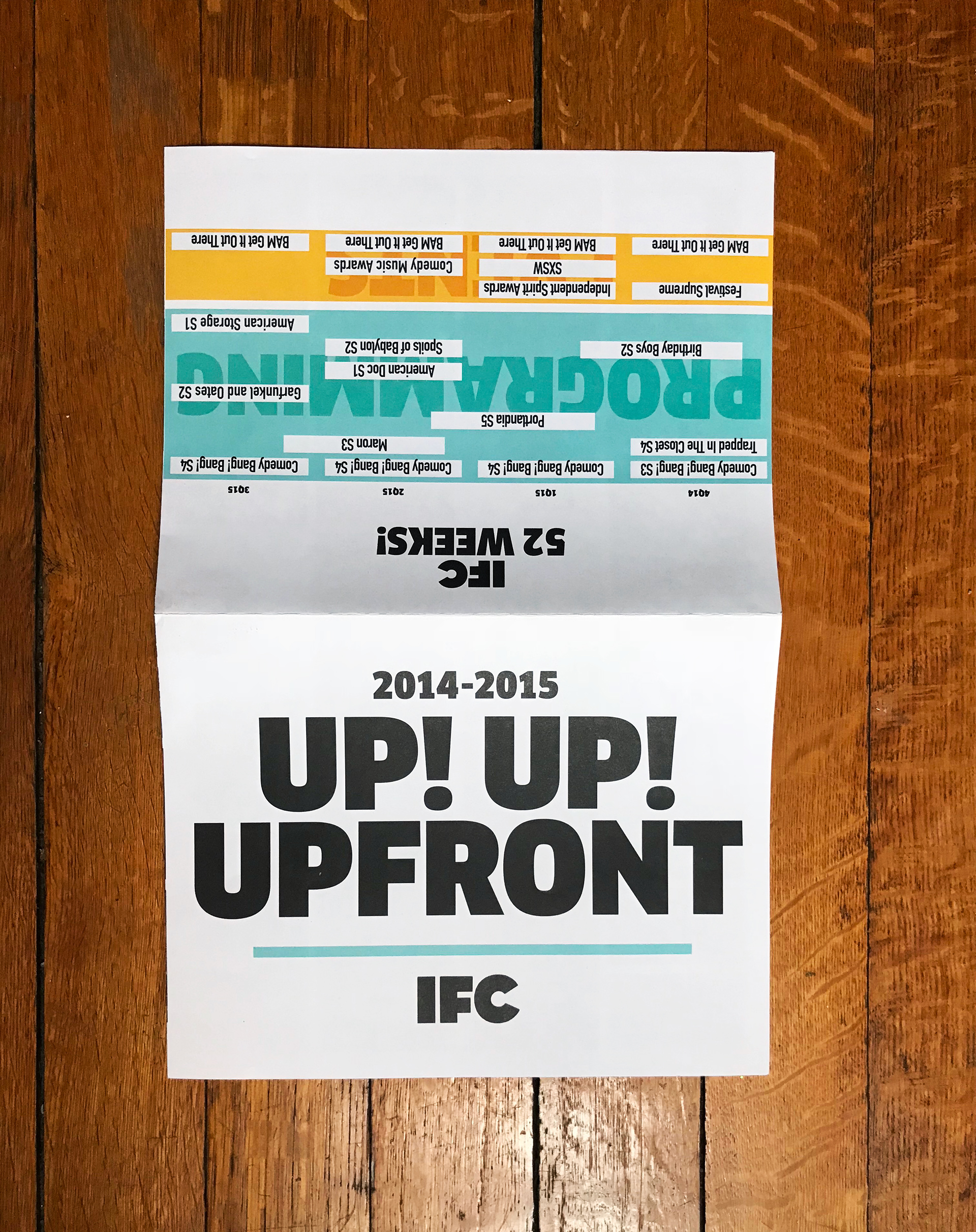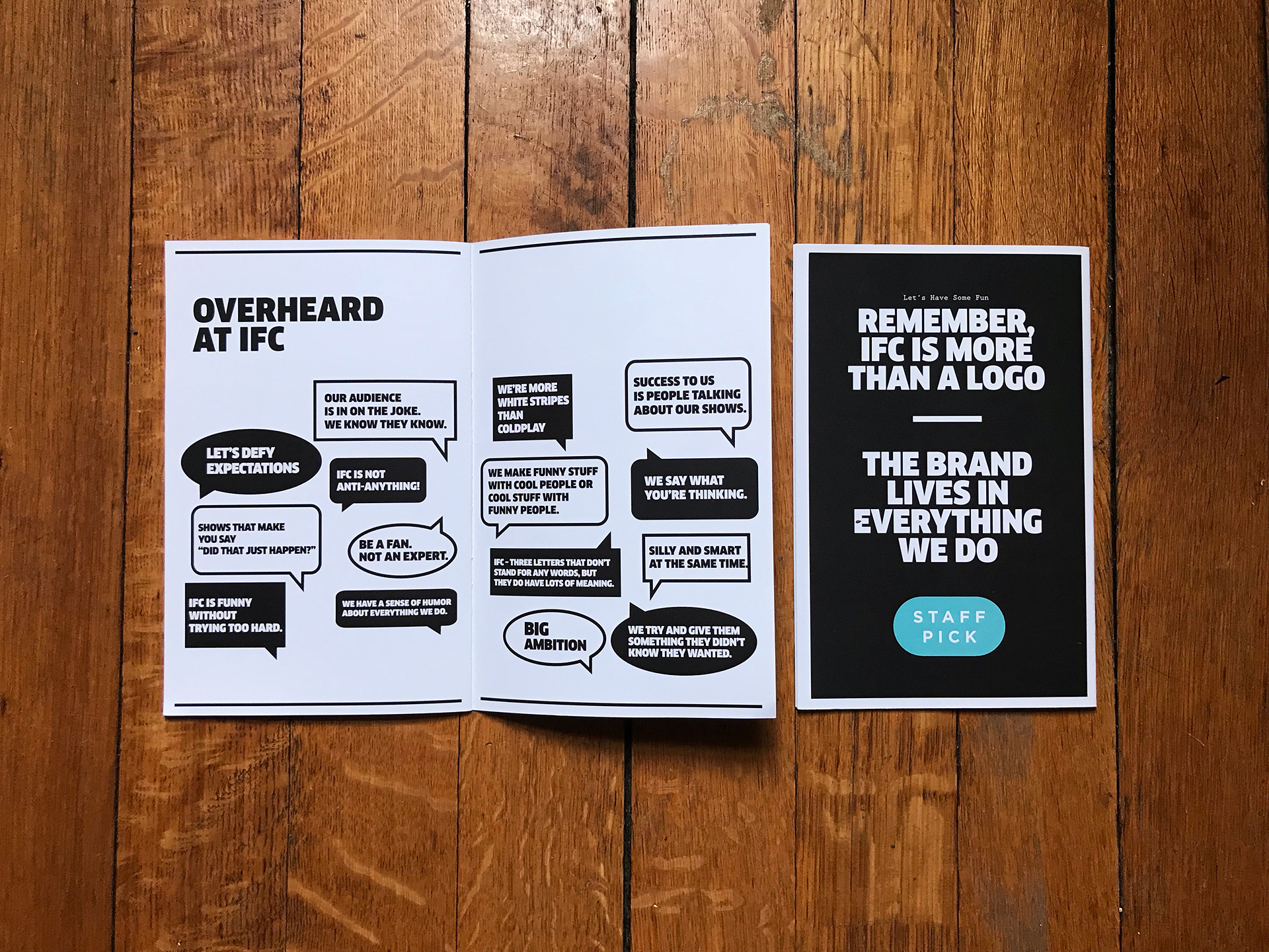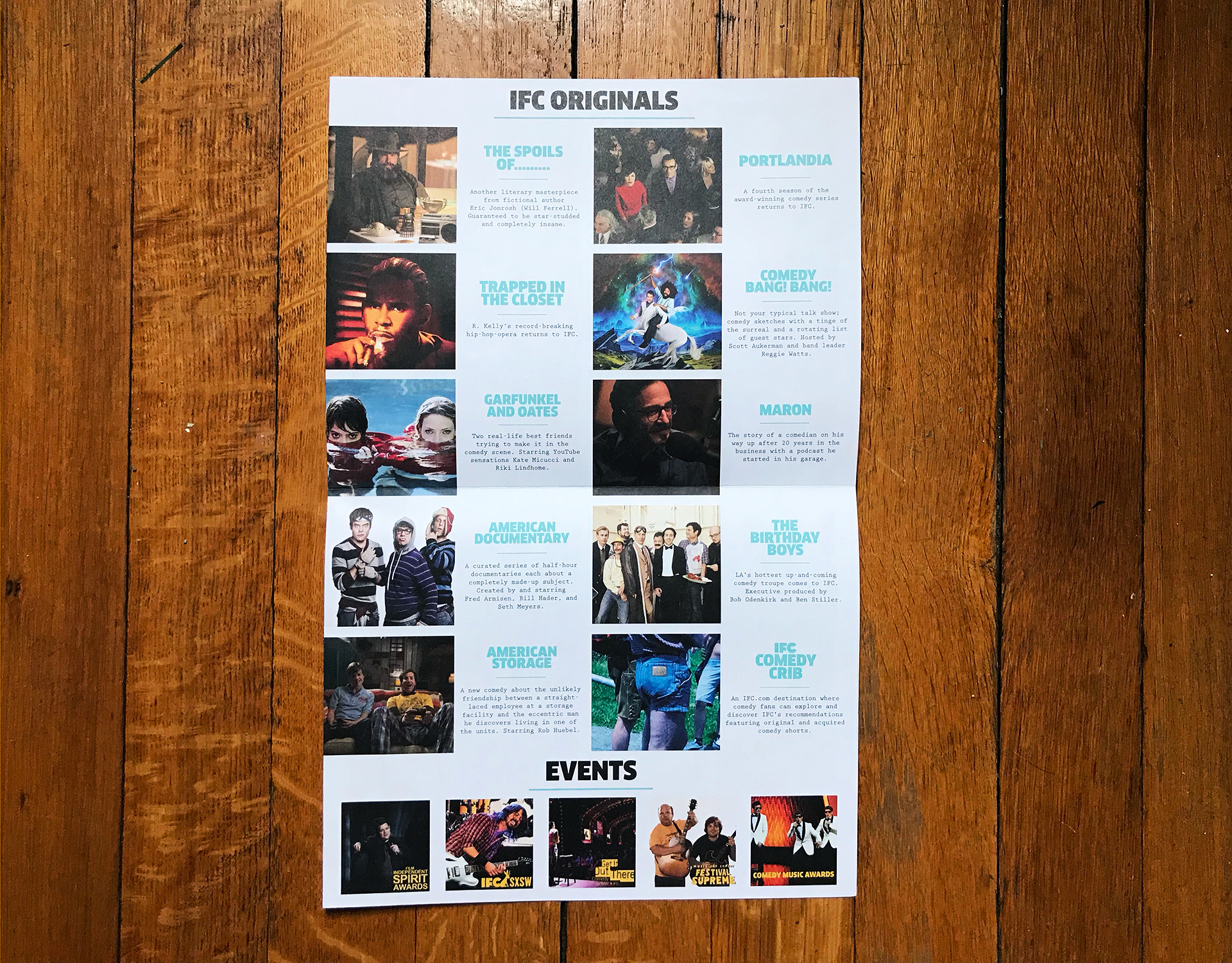 Many print materials were created during my time there including — a zine to be given out at the sales Upfront Presentations; a Broadcast Calendar; Internal IFC User Guide for employees; and IFC stationary and mousepad. I also designed and created digital assets to be added to IFC’s blog page, digital ads, email signatures, and the social media posts for the IFC original programs.