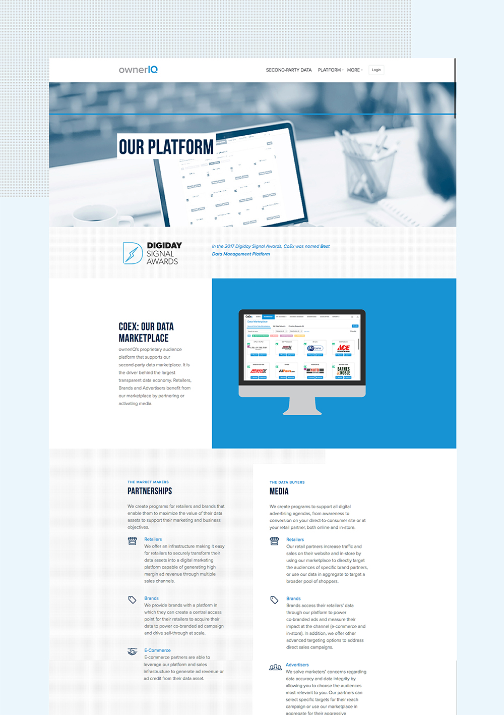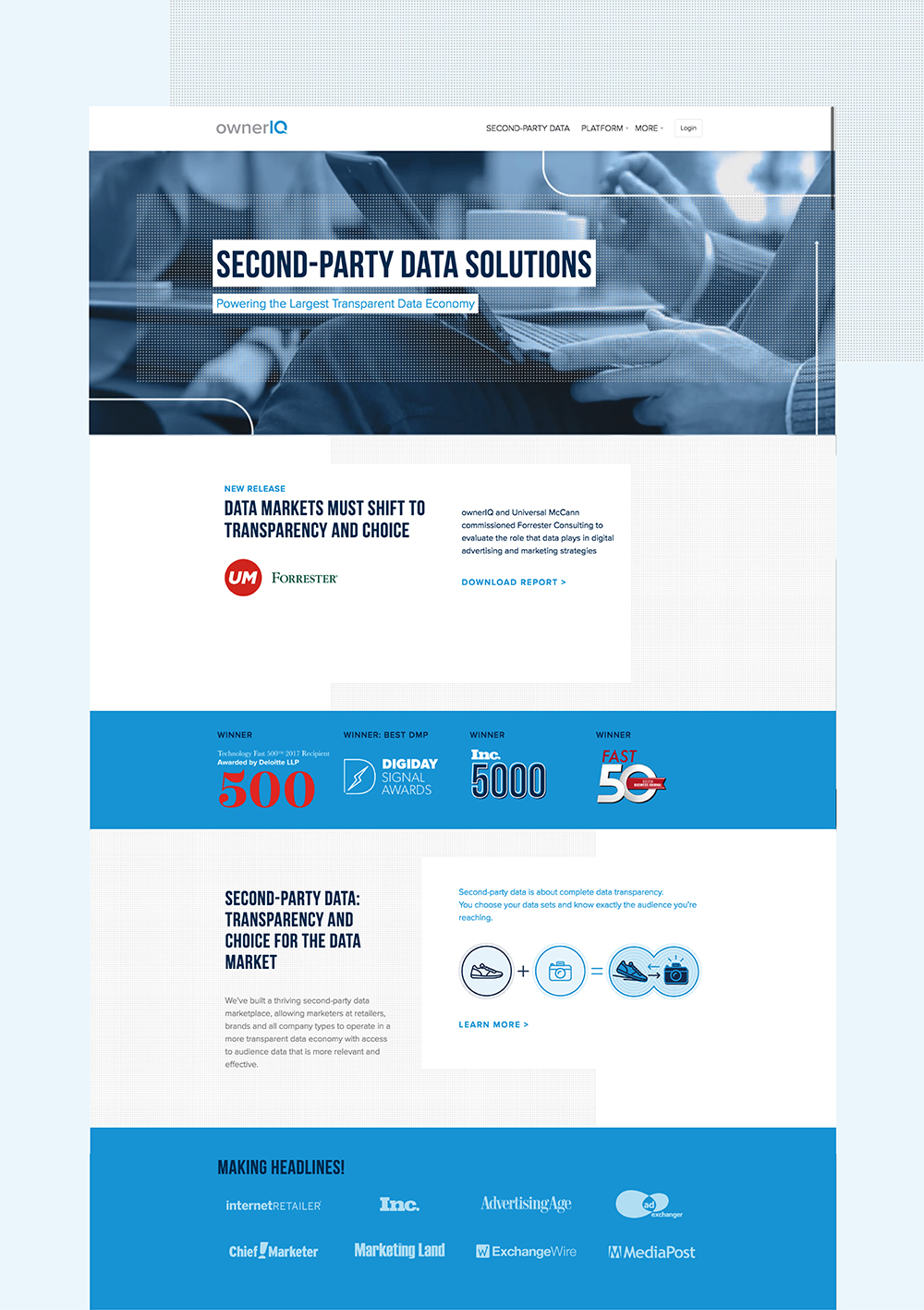 While at ownerIQ — a data and media company, I worked on evolving ownerIQ’s brand to better market the mission and style with a website revamp.